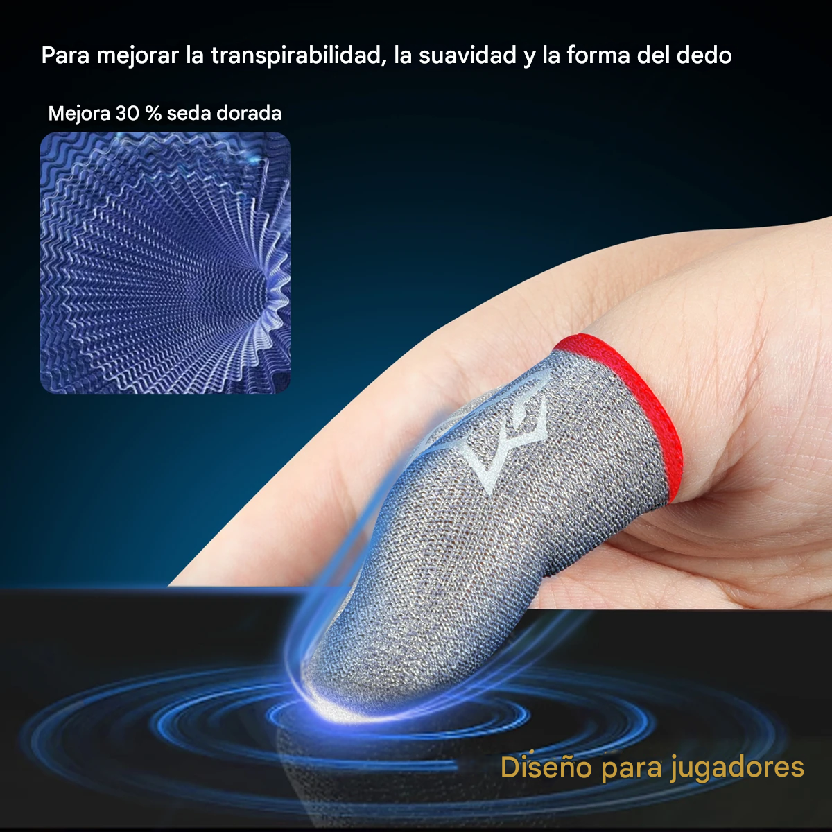 Si buscas una experiencia de juego más suave y sensible, los Sarafox V10 son tu mejor elección. A diferencia de los dedales tradicionales, esta versión incorpora una mezcla exclusiva de Fibra de Seda Dorada (80%) con filamentos de plata conductora.