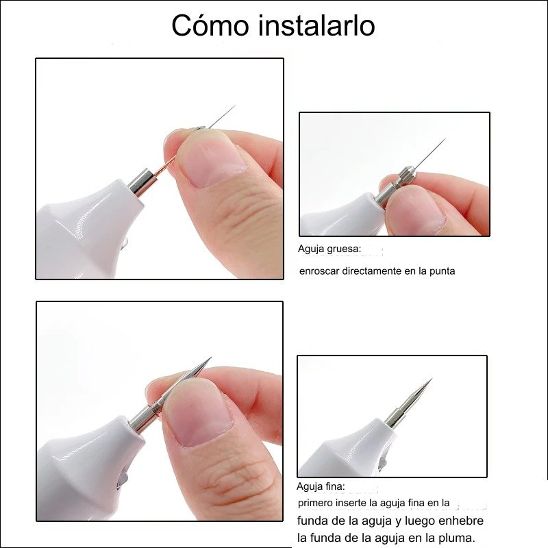 - Contenido del paquete: 10 Agujas finas + Puntas de ajuste (cabezales).