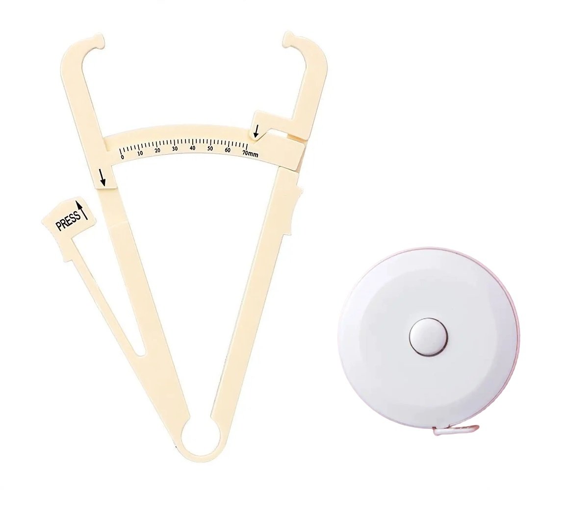 - 1x Adipómetro Plicómetro (0-70mm): Para medir el porcentaje de grasa subcutánea pellizcando los pliegues de la piel.