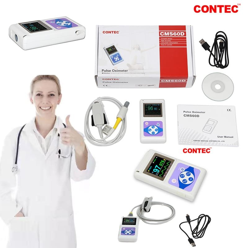 Oxímetro de Pulso de Mano Contec CMS60D – Neonatal, Pediátrico y Adulto (Con Sonda y Software)