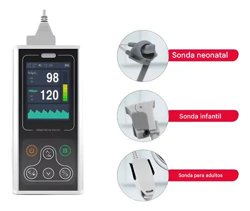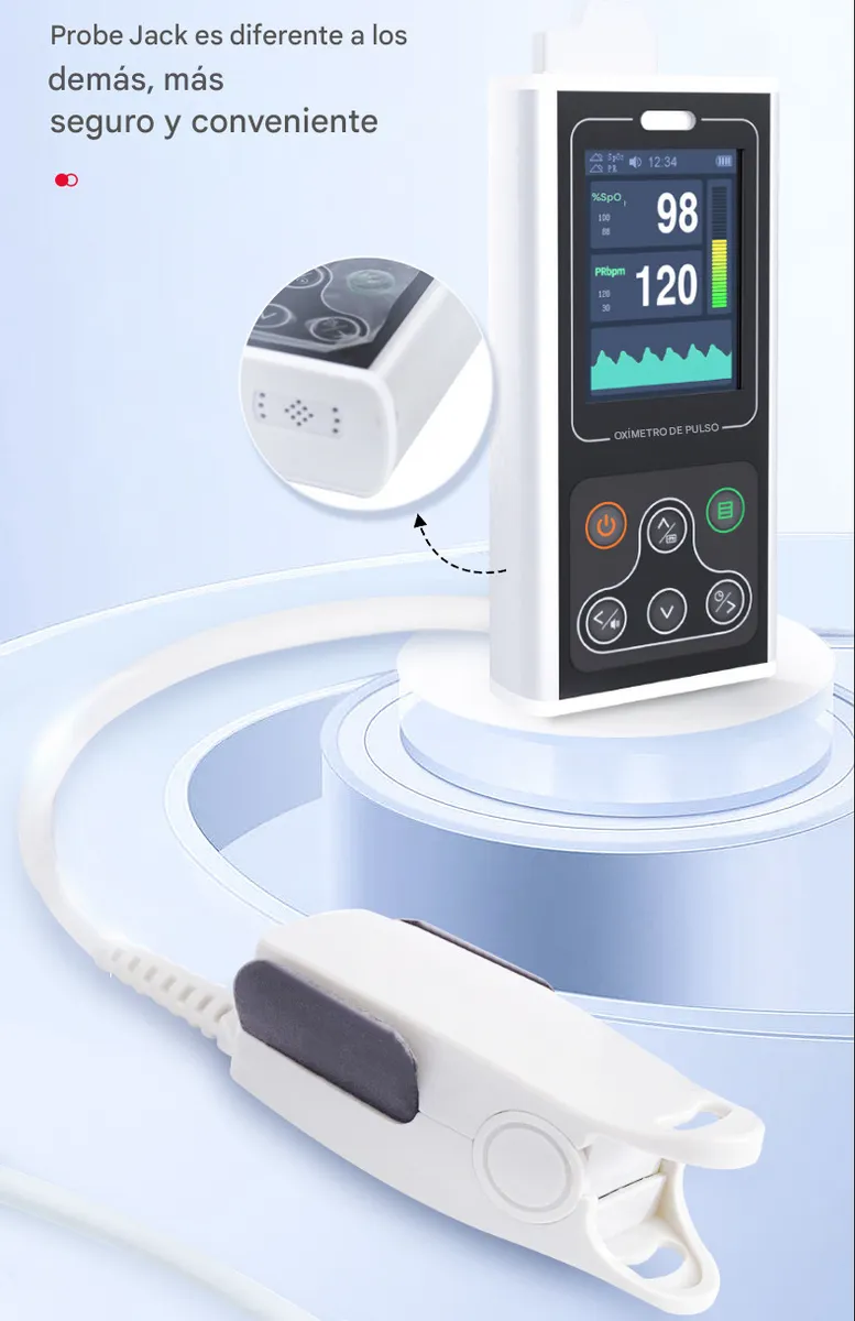 Monitor de signos vitales de mano con tecnología avanzada y pantalla a color de 2.8″. La solución definitiva para monitoreo clínico y doméstico en pacientes de todas las edades. Kit “Todo en Uno”: Incluye 3 sensores intercambiables (Bebé, Niño, Adulto). Pantalla: LCD Color 2.8″ con rotación y brillo ajustable. Funciones: Alarmas auditivas, Reloj y memoria de datos. Conectividad: Transmisión de datos a PC para análisis e informes. Garantía: 12 Meses directo de fábrica.